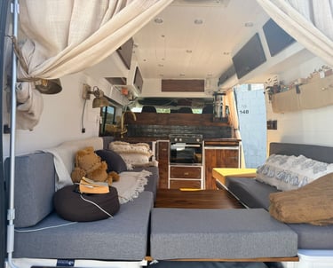 Tenemos una empresa que nos trabaja el vinilado de tu furgo para darle una imagen unica y ademas una empresa que nos hace todo tipo de colchones y cojines a medida.